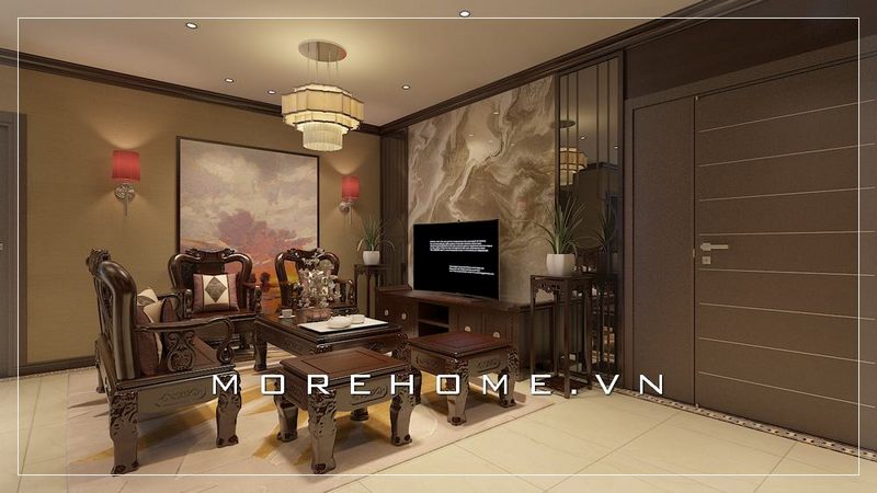 Bố trí nội thất cho phòng khách chung cư hiện địa bao gồm đồ nội thất cao cấp và gỗ óc.
